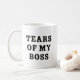 Design engraçada para o trabalho para provocar seu chefe. O texto na caneca diz "Lágrimas do Meu Chefe".