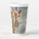 Girafa com personagem em uma caneca latta. Quem não gostaria de olhar para uma girafa doce enquanto bebe seu café?