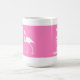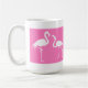 Esta é uma caneca do divertimento para amantes do flamingo! O design vai toda a maneira em torno da caneca e caracteriza dois flamingos em um fundo cor-de-rosa brilhante.