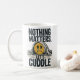 Nos dias em que a vida se sente demais, esta caneca "Nada importa, vamos abraçar" traz humor e coração em uma taça acolhedora. Apresentando um emoji chorando embrulhado num cobertor, ele captura perfeitamente aquela mistura de medo existencial e afeto. Ideal para dotar, desabafar, ou apenas tomar chá enquanto abraça o caos.