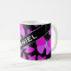 Características deste design da caneca um enxame de representações artísticas da borboleta. As asas das borboletas caracterizam uma linha várias máscaras coloridas teste padrão das cores como magenta e roxo, quando o corpo for máscaras coloridas da água-marinha. Igualmente caracteriza um nome feito sob encomenda no texto colorido branco dentro de uma área colorida obscuridade, com ambos em um ângulo. [~Z0000051]