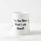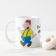 O personagem de desenho animado do chefe com slogan em uma caneca. Modelo inteiramente customizável