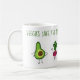 Comece seu dia com um sorriso quando você sorve seu café ou o chá do este vegetarianos bonitos salvar a caneca do dia que caracteriza um abacate e um rabanete.