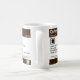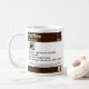 Design da caneca na imagem de uma etiqueta da prescrição para o café
