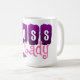 Quem é o chefe? Design de texto bonito no roxo com esboços brancos que diz a senhora do chefe. Uma ilustração de uns calçados do salto de estilete adiciona um ponto de exclamação da forma!