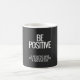 Comece todas as manhãs com o encorajamento dessa magna caneca de cerâmica, com a frase motivadora: "Seja Positivo. Uma mente negativa nunca lhe dará uma vida positiva." Seu design preto e branco minimalista adiciona estilo e positividade à sua cozinha, escritório ou espaço de trabalho. Durável, fácil de limpar, e perfeito como um presente pensativo para amigos, colegas, ou qualquer pessoa que valorize boas vibrações em cada passo.