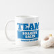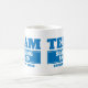 Equipe azul caneca personalizada. O ideal para equipes do escritório, eventos da família, jogo do divertimento ou para ostentar teams. Personalize este design da caneca com seu próprio nome do nome ou de família da equipe e ano de criação da equipe ou da divisa. Outro colore disponível. Excelente como um presente secreto do papai noel do escritório, agradeça a lhe ou ao presente inspirador da equipe. Projetado por www.mylittleeden.com no zazzle