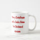 " Feliz Natal - com clucks das galinhas!" é a mensagem nesta caneca sazonal bonito. Os lotes de pintinhos macios do Natal com chapéus do papai noel estão lá cumprimentá-lo na manhã de Natal com este cumprimento animador - que poderia ser mais agradável?
