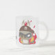 Esta caneca metade-transparente do vidro de fosco contem 2 personagens de desenho animados bonitos. Em um lado, Taucoo é um guaxinim que joga como um pirata, com um par de orelhas de coelho longas, vestindo uma obscuridade - a capa vermelha que tem um crânio e um cruzamento das facas e das espadas nela. Sua pele é cinzenta. Há diversos anéis pretos em sua cauda longa e grande. É de sorriso e de pensamento algo. Em um outro lado, Taucoo é irritado e usando um estilingue e apontando um alvo. Especialmente, tem uma máscara preta legal! E está lambendo sua língua, muito impertinente! o fundo é fogo.