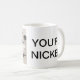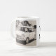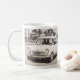 Uma caneca com uma imagem de um carro de polícia velho de Mini Cooper S em um lado e a legenda "VOCÊ É ENTALHADO" no outro. A imagem é uma reprodução de uma pintura de Fox da "coleção do Sid do carro bobina".