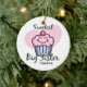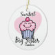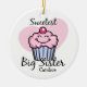 Nossa IRMÃ MAIS VELHA que MAIS DOCE o design é uma maneira bonito de comemorar a irmã mais velha está em sua família. Caracterizando um cupcake de sorriso doce com glacé cor-de-rosa e uma cereja vermelha grande na parte superior com um fundo cor-de-rosa do coração. Aperfeiçoe para um aniversário ou sua árvore de Natal. Texto customizável. Também disponível em t-shirt e em presentes. Original de PinkInkArt!