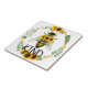 Azulejo cerâmico com abelha pintada e girassóis para encorajar e promover a bondade.