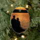 Este ornamento da fotografia das belas artes caracteriza dois amantes na silhueta que apreciam o por do sol no lago Cayuga em Ithaca, NY. Este é um dos lagos finger do norte do estado de New York. Alaranjado, amarelo bonitos e ouro colorem as ondas e as ondinhas em um teste padrão abstrato.