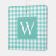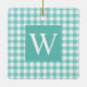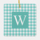 De Cerâmica Aqua Gingham Cheque Ornamento Cerâmico Inicial