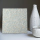 Refletindo a exuberância do design de Arte Deco, esse azulejo cerâmico apresenta um motif de diamante marcante em seu centro, emoldurado por linhas angulares e um espectro de azul, do céu mais leve ao marinho mais profundo. Acentos de marfim e creme se intersetam com o blues, criando uma sensação de profundidade e sofisticação, enquanto as linhas de ouro metálicas fornecem um contorno luxuoso que capta a essência do estilo icônico da era. Apesar da sua aparência complexa, o azulejo tem uma superfície lisa devido à técnica avançada de impressão utilizada, oferecendo intrigas visuais e praticidade para espaços contemporâneos.
