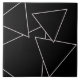 Triângulos empilhados em preto com bordas prateadas sobre fundo preto.