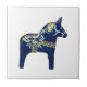 Este Azulejo de Cavalo Dala Azul, virado para o design azulejo cerâmico esquerdo, é de um cavalo de madeira desenhado, talhado e pintado por Julia Morrill