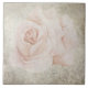 A pintura de aquarela digital original neste azulejo imita a aparência de azulejos de argila envelhecidos em tons de branco ósseo e aqua e cada um com uma imagem botânica diferente, pintada manualmente, como a hidrangea branca, rosas rosa pálidas, orquídeas, e vários verdes-de-penas.