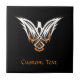 Ícone de pássaro estilo tribal inspirado em designs de nó celta. Cor de fundo personalizada. Texto personalizado.