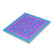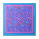 Um Azulejo cerâmico bonito, com um padrão de flores em roxo, turquesa, rosa e laranja sobre fundo do Sky Blue, de uma colagem de papel pintada à mão por Judy Adamson. Você pode mudar facilmente a cor do plano de fundo, se desejar, usando o botão Editar. Adicione uma moldura de madeira para usar como trivet!