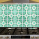 Este azulejo de sotaque decorativo tem um delicado padrão de medalhões O Azulejo se repete, arranja alguns para colocar um ponto focal em sua cozinha Backsplash. As cores incluem tonalidades de menta, marisco e esmeralda sobre fundo branco. Use isto na sua cozinha, na casa de banho ou na lareira. É perfeito para a casa de campo ou fazenda. Esta design vem do azulejo de Oregon Fay Jones Day.