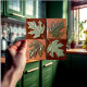 Este azulejo de folha de mapa é para o seu Bungalow, cabana ou alojamento. Isso é perfeito para sua lareira, banheiro ou cozinha Backsplash. As cores são dois tons de verde, pêssego e ferrugem. A design vem do Azulejo de Oregon Fay Jones Day
