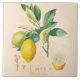 fruta e flor lustrosas resistentes do limão de 6 x 6 características do azulejo da polegada com texto francês dos textos botânicos franceses do vintage. Acento perfeito para uma cozinha francesa do país ou a cozinha da casa da quinta.