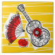 design, de cor branca, de estilo retrô, com lembranças de férias espanholas; uma guitarra de ferro, um ventilador de lacy e uma rosa vermelha em fundo listrado. Um design personalizável em preto, branco, vermelho e ouro amarelo para você personalizar com seu próprio texto, imagens e ideias. Uma imagem de arte digital original.