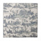 Azulejo cerâmico com um padrão de tecido francês de Toile antigo, feito em azul e marfim, com cenas charmosas de cada dia. Excelente como trivet para a cozinha ou enquadre-a na parede.
