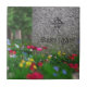 Um cemitério tranquilo no primavera, encheu um motim de flores, papoilas, dentes-de-leão, e muitas outras flores borrifadas pela grama verde e entre as pedras. No primeiro plano está uma lápide gravada com uma cruz Celta e a palavra "Resurgam" - Latim para "Eu vou levantar de novo".