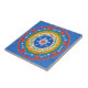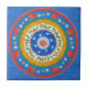 Adicione um toque de tomate à decoração da sua casa com este azulejo alegre. Estrelas e tomates orbitam sobre fundo azul.