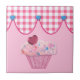Este Azulejo cor-de-rosa apresenta um cupcake desenhado pelo mouse com um gingham cor-de-rosa e uma haste cardíaca azul. Enquadre ou faça dela uma caixa de joias!