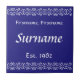 Azulejo de nome da família de estilo vitoriano - branco em azul com borda da impressora