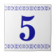 Azulejo do número da casa do Victorian - azul no branco com culy uma beira da sugestão.