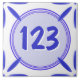 Azulejo do número da porta da casa. Um azulejo bonito do número da porta da casa com número azul impresso inteiramente customizável "123" de Delft. Este azulejo holandês é inteiramente customizável, muda o número da casa "123" e adiciona seus textos e imagens! Um grande presente do número da porta da lembrança de Holland para sua amigos ou família!