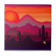 Azulejo do Pôr do Sol no Deserto, pôr do sol no Arizona, pôr do sol no sudoeste, sol de Scottsdale, pôr do sol no deserto, crânio de coiote, Virginia Vivier, Arte Popular Vagabundo, arte independente, decoração boêmia, vermelho azul amarelo, paisagem, cores fortes