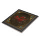 Nós somos orgulhosos oferecer este azulejo de alta qualidade que caracteriza o quinto sinal do zodíaco: Sagitário. Este símbolo magnífico é descrito com ouro cinzelado e laca vermelha jeweled gravada contra um fundo de couro. Os quatro sóis golpeados no ouro representam a totalidade das estações. No centro de cada sol é o birthstone encaixado do Sagitário: turquesa (descrita).