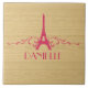 Azulejo francês florescente elegante e chico com fundo de aparência falsa de grãos de madeira e design de torre Eiffel em magenta adornada com cascatas de espirais na moda. Esta design de moda e moda é fácil de personalizar com o texto personalizado de sua escolha. Clique em "Personalizar" para encontrar mais opções de personalização.