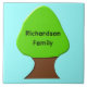 Este incrível azulejo apresenta uma imagem digital divertida de uma árvore com um topo verde e um tronco marrom sobre um fundo azul-céu. Há um texto personalizável na árvore que permite digitar o nome da sua família para personalizar este adorável azulejo.