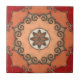 Um azulejo de designs retro-metálico romântico que apresenta um padrão floral geométrico inspirado pela arte italiana do Mediterrâneo em tons de terra quente. Bonita para um banheiro ou cozinha.