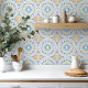 Azulejo marroquino com aquarela azul e laranja
