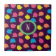 Rosas estilizados em néon brilhante cor-de-rosa, azul, amarelo e coral com folhas verdes neonatais são girados sobre um fundo roxo profundo para criar um padrão floral divertido. Este azulejo pode ser enquadrado para criar um trivial ou colocar dentro a tampa da caixa de presente de madeira. Azulejos sem um quadro também ajustado a caixa-presente grande para criar um conjunto correspondente. Personalize o monograma com a sua inicial para torná-lo próprio.