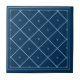 Estes azulejos inspirados por Marrocos estão em tons de azul. Este padrão de diamante e ponto está em azul-marinho, azul-tinta e azul-mediterrânico.