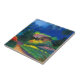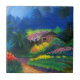 Pintura de um cobrir caseiro com flores rodeadas por plantas e árvores insulares.