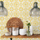 Este azulejo cerâmico é perfeito para design interior ou backsplash. O azulejo apresenta um padrão mediterrânico português de cor amarela e branca quente, perfeito para qualquer espaço. Use-o como uma peça de sotaque na sua cozinha, banheiro ou sala de estar. Disponível em dois tamanhos 4,25 x 4,25 e 6 x 6 polegadas. Quatro azulejos giraram de um belo padrão decorativo em círculo, como visto na foto do cobrir. Este design está disponível em cores amarela, cinza e azul. Crédito da foto do cobrir: Uliana Kopanytsia