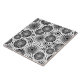 Padrão retrô com círculos e flores em preto e branco.