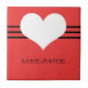 Doce e encantador Azulejo Moderno com fundo vermelho escuro e um coração fofo e borda listrada. Este azulejo giro e giro vai adicionar estilo a qualquer decoração. Personalize com o texto de sua escolha. Clique em "Personalizar" para encontrar opções adicionais de personalização.