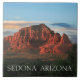 Azulejo cerâmico quadrado com imagem de várias formações rochosas vermelhas em Sedona, Arizona iluminada por um incrível pôr do sol vermelho e laranja. Consulte pote de doces, caneca, placa de papel e portas copos correspondentes. Veja toda a coleção de Azulejos de Arizonas na seção HOME.