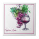 Esta trivet de azulejo cerâmico é mostrada com uvas amantes do vinho e impressão de vinho. Personalize este item ou comprar como está. Imagem do stock freepik.com