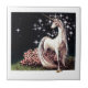 Contra um céu estrelado, o lendário, unicórnio mitológico, a partir de um bestiário medieval ou de um conto de fadas.